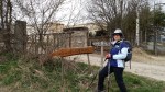 - Départ de Saugues au petit matin. Des sculptures « champignons » sculptées dans le bois derrière moi!