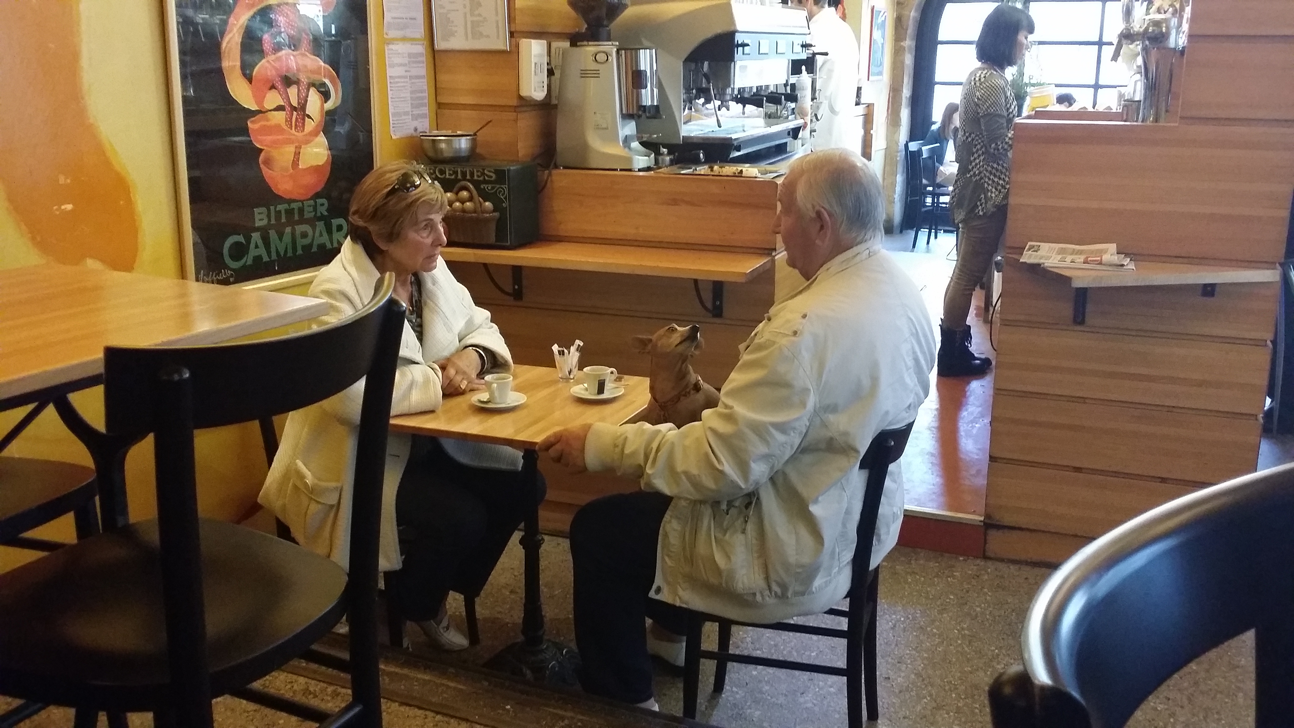 Un petit chien et son maître dans un café! situation rare en Nouvelle-Zelande