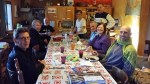 - A table pèlerins! Christopher notre copain canadien au premier plan, Dominique et Marie-Laure et nos hospitaliers au fond